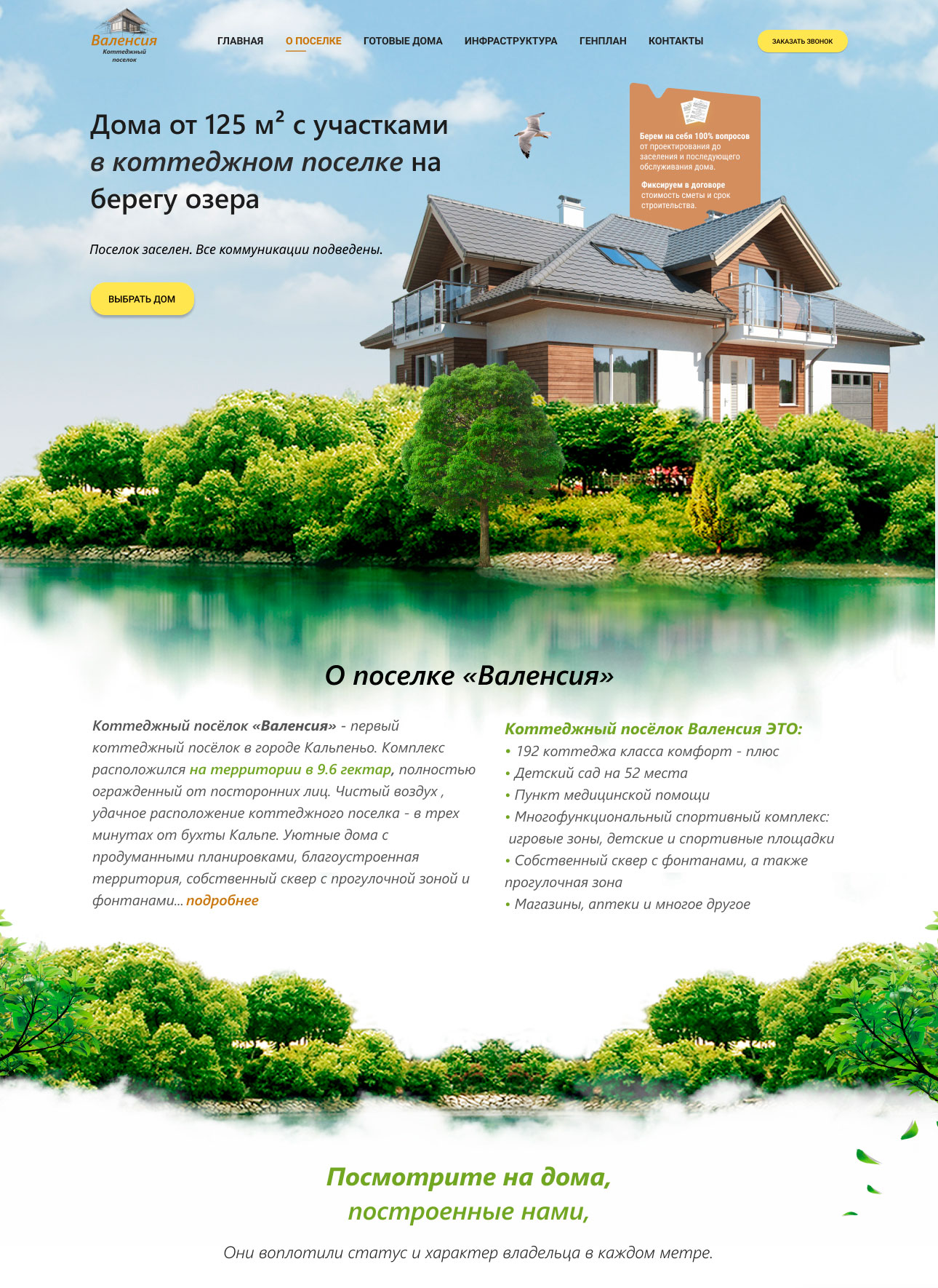 Создать презентационный сайт для коттеджного поселка недалеко от Валенсии — с атмосферой уюта, качества и европейского стиля жизни. Сделать акцент на преимуществах: современная архитектура, природа, безопасность и близость к городу.