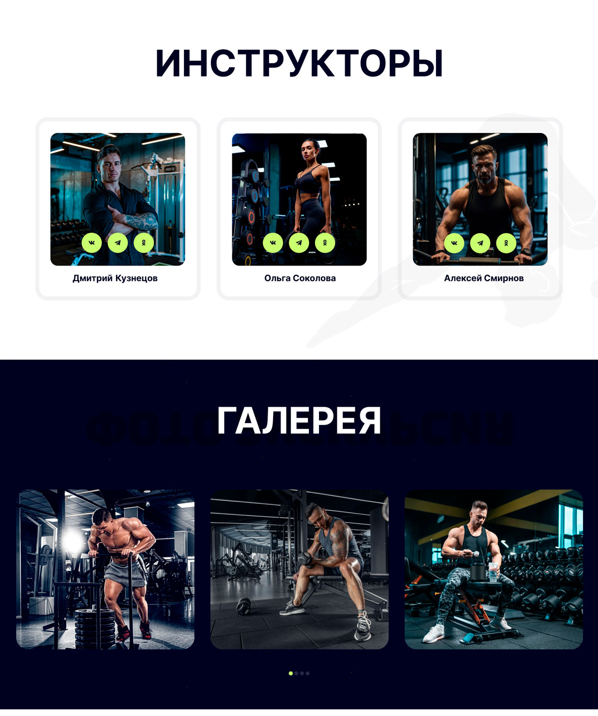 — Разработаны блоки для расписания занятий, описания направлений, тренерского состава и абонементов