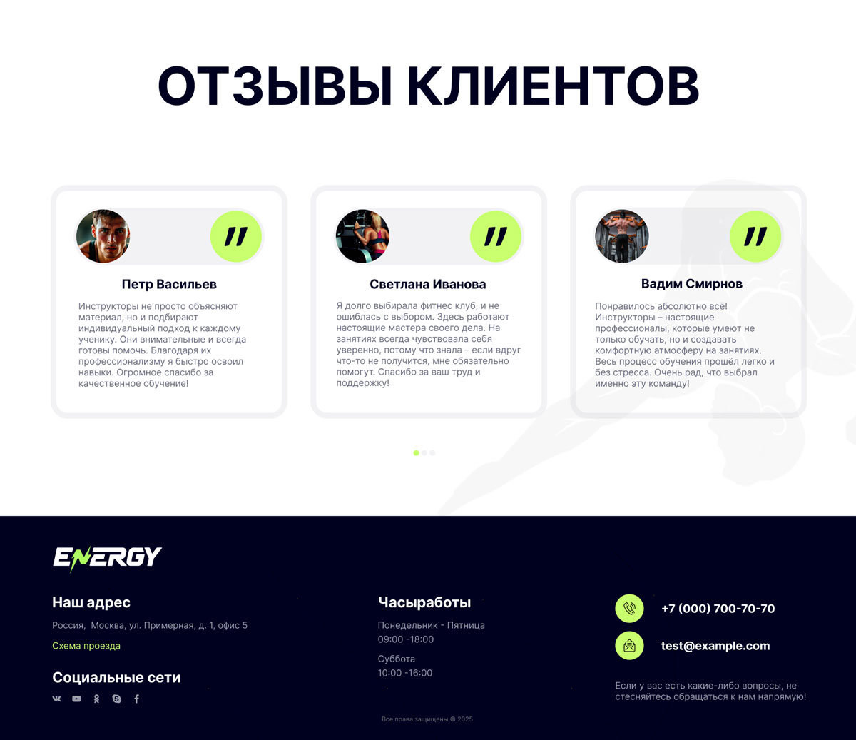 Сайт стал эффективным инструментом привлечения клиентов: он вдохновляет, мотивирует и помогает быстро найти нужную информацию о клубе и тренировках.